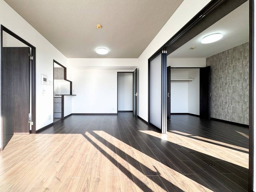 間取りは3LDKのファミリータイプですが、6帖の洋室を開放し、ゆったりとした広いリビングとしての活用もおすすめです。