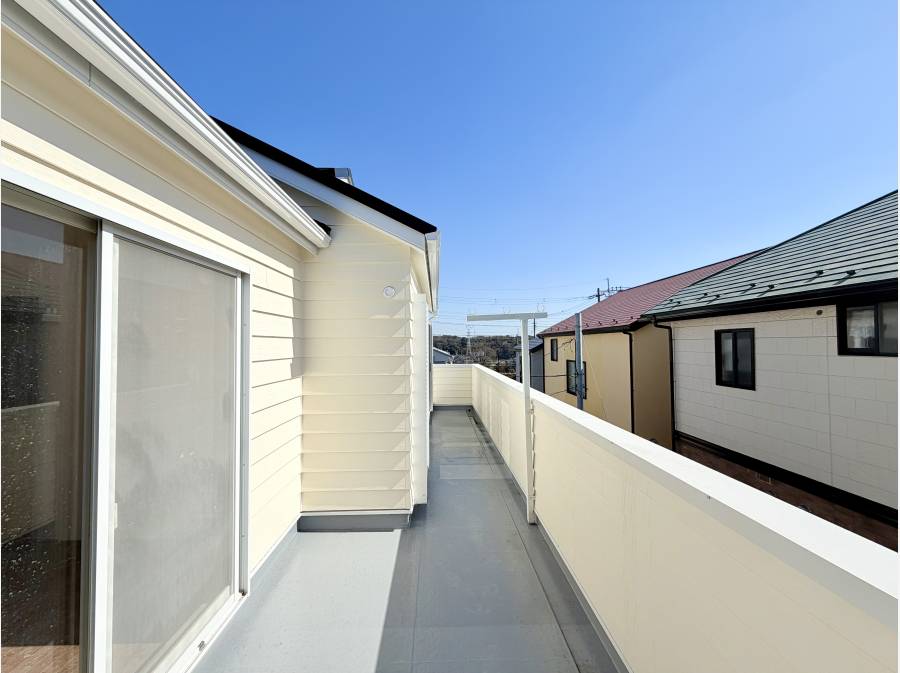 バルコニーが全室と繋がっていて、どこからでも洗濯ができる広々としたバルコニーです。