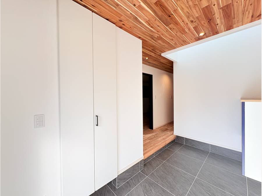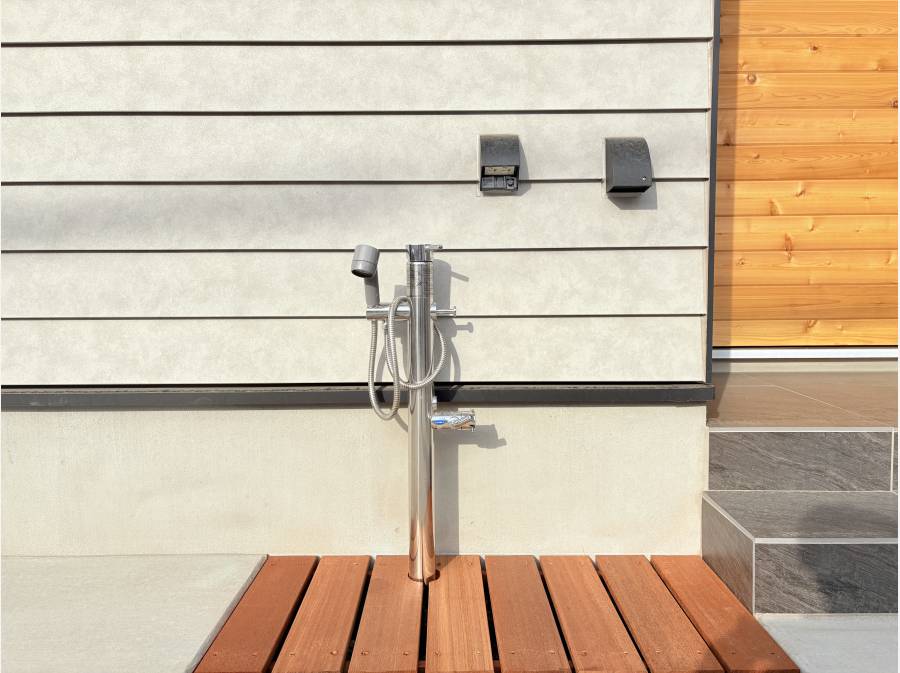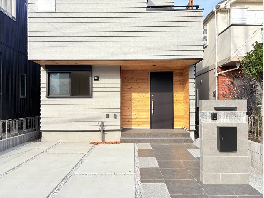 木の温もりを感じる外観が魅力的で、床やリビング天井にはアカシアの無垢材を使用。自然素材がもたらす心地よさを実感できるお住まいです。