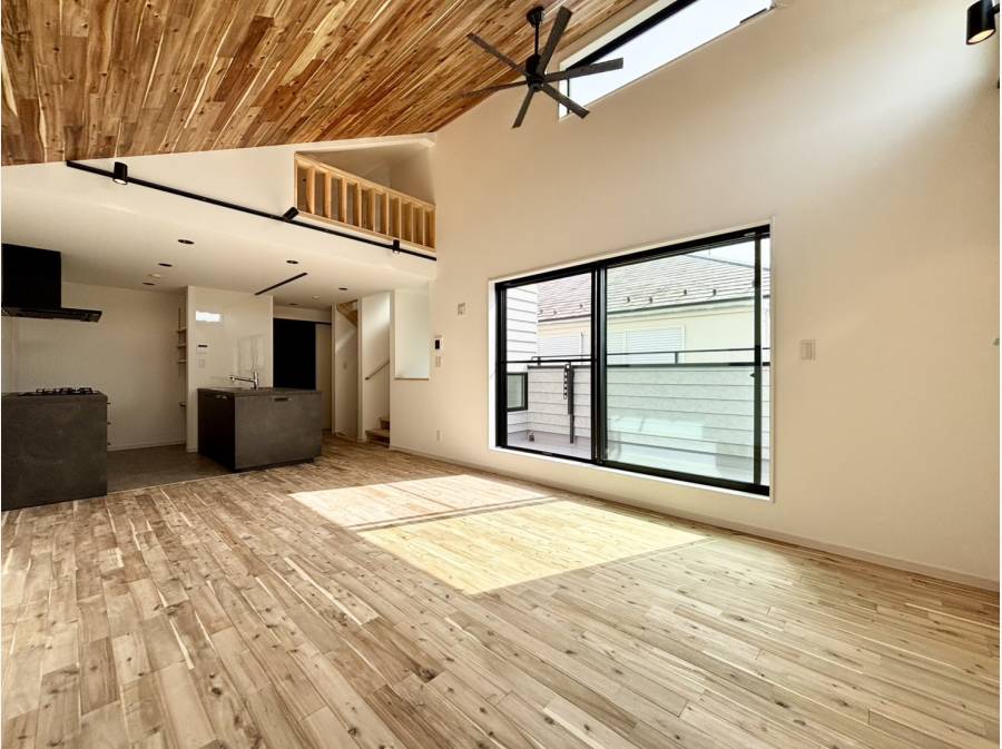 湘南の開放感とデザイン性を兼ね備えた新築戸建のご案内です。リビング天井や床には無垢材を使用し、心地よいぬくもりを感じられる空間が広がります。