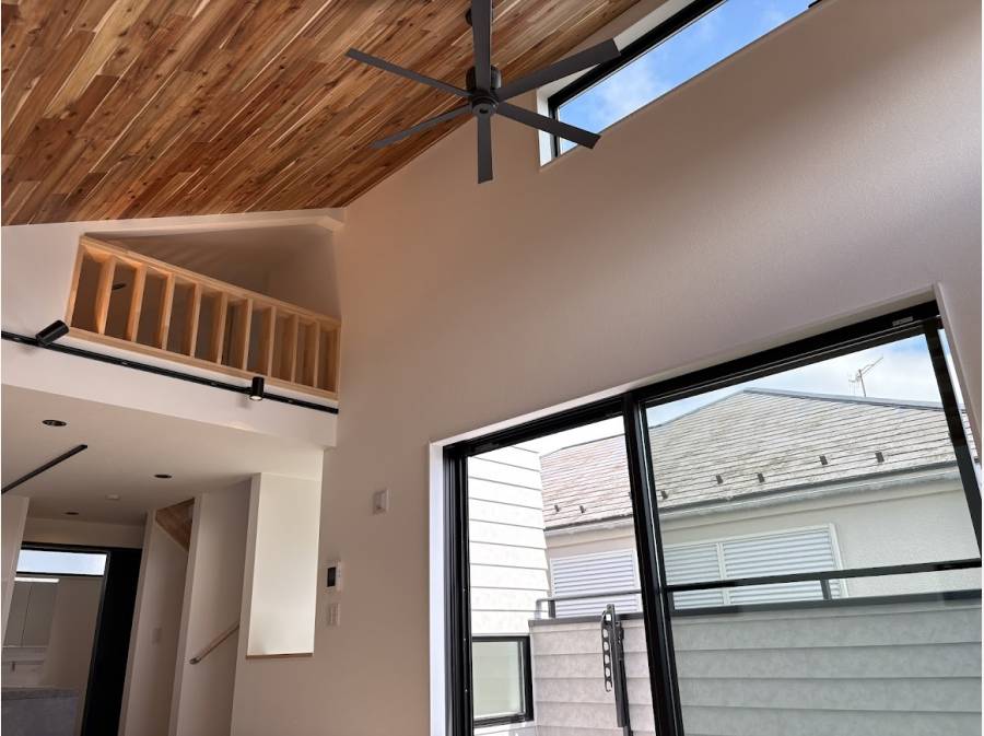 アカシア無垢材×シーリングファンが織りなす、開放的でな空間。