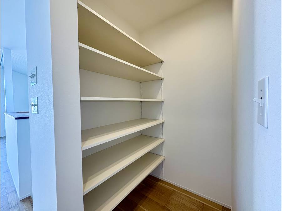 キッチンから洗面室へのスムーズな移動を可能にする便利な家事動線や、各所に配された豊富な収納など、暮らしに役立つ工夫を随所に備えています。