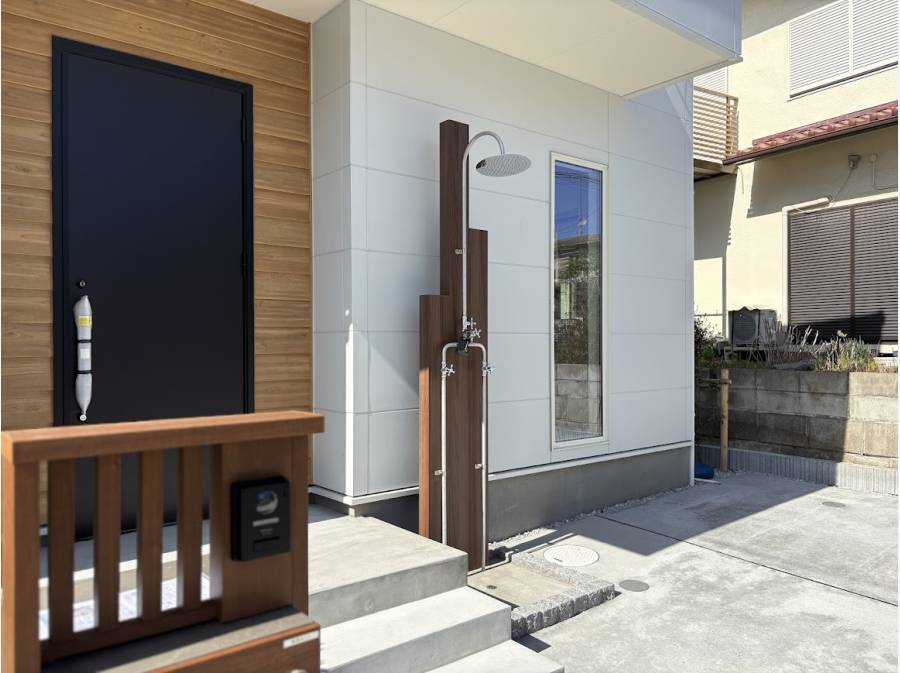 カースペースは並列で2台分を確保し、湘南ライフに便利な「外シャワー」も設置。海遊びからの帰宅も快適です。