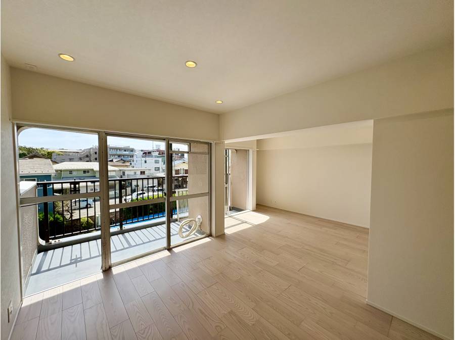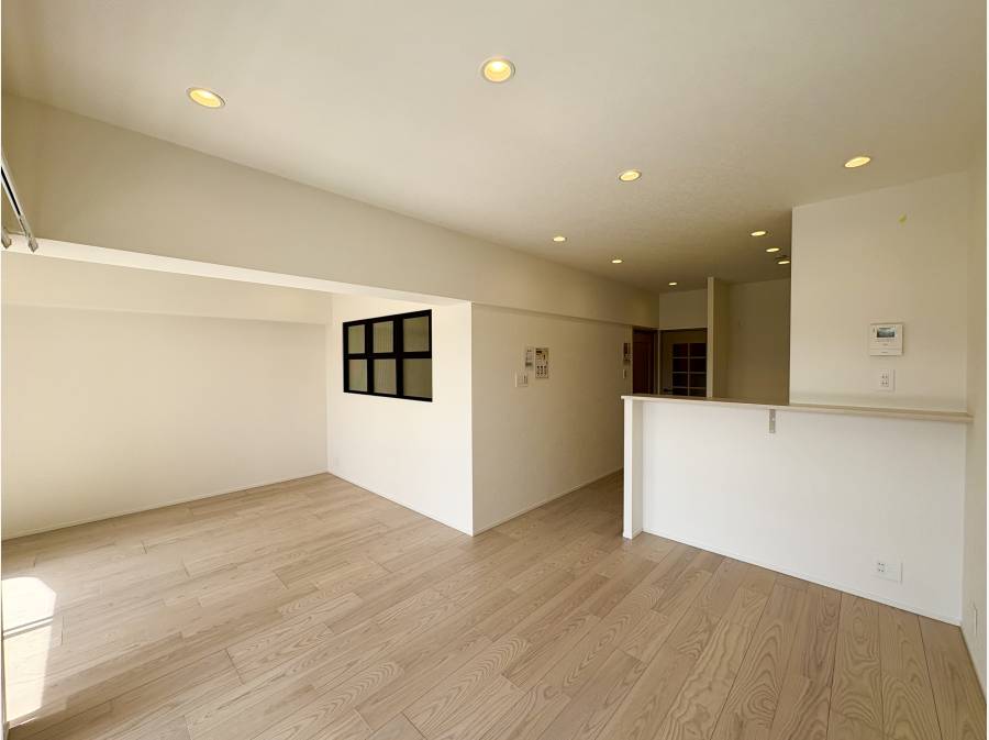 室内はフルリノベーション済みで、約15.8帖のLDKにはBluetoothスピーカー内蔵のダウンライトを設置。お気に入りの音楽を楽しみながら、ゆったりとしたひと時をお過ごしいただけます。