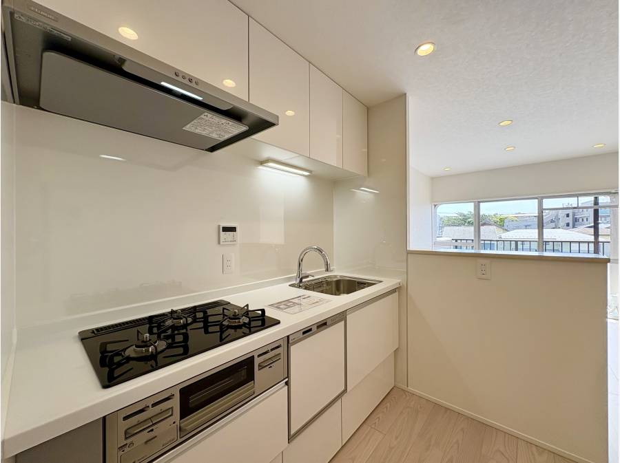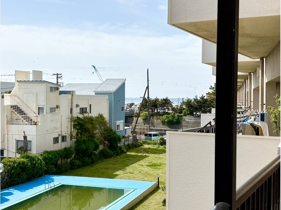 さらに、バルコニーからは海を眺めることができ、夏季限定で敷地内のプールもご利用いただけます。最新設備が充実したキッチンには食洗機や浄水器を完備し、日々の家事をサポートします。
