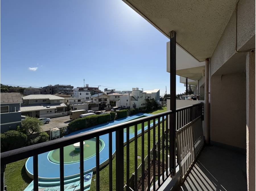 バルコニーからは、青い海がふとした瞬間に顔をのぞかせ、暮らしに潤いを添えてくれます。特に夕暮れ時には、美しいグラデーションが広がる景色を堪能できるのも魅力のひとつです。