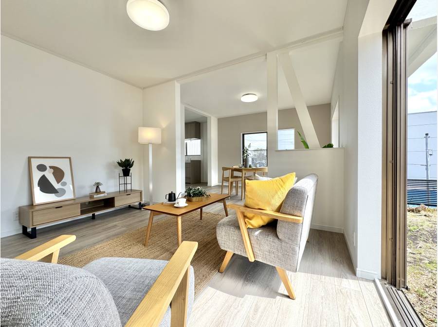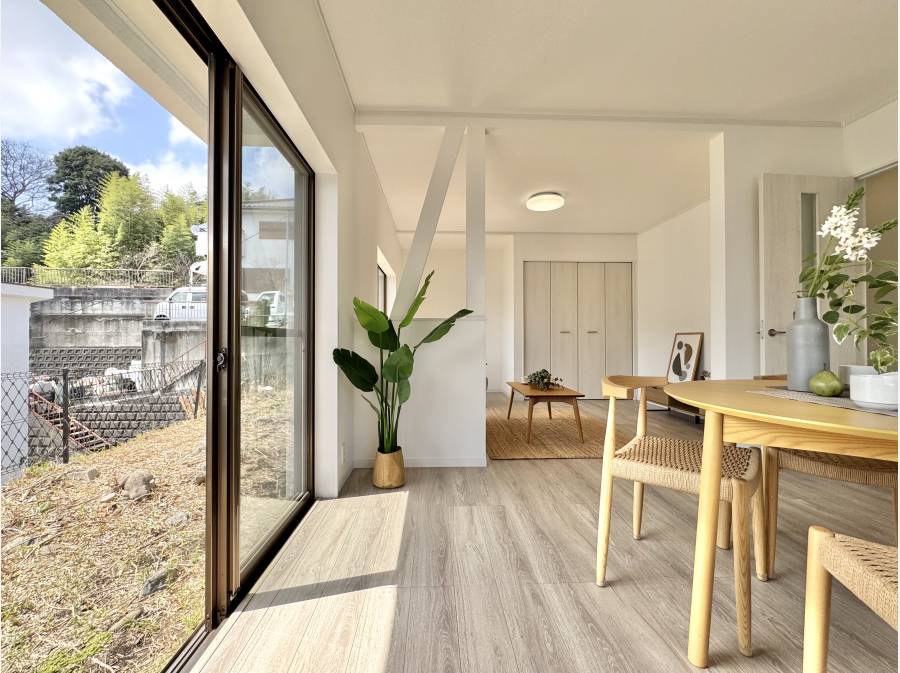 青空の下に広がるゆとりある敷地と、どこか懐かしさを感じる落ち着いた佇まい。南側に開けた立地は陽当たりに恵まれ、室内にはやわらかな光が心地よく差し込みます。フルリノベーションにより、水まわりや内外装は一新され、これからの暮らしに安心と快適さをもたらします。約40坪の庭では、休日にBBQやガーデニングを楽しむなど、家族や友人と過ごす時間が自然と増えていきそうです。日常の延長にある、少し豊かな時間。そんな“ちょうどいい贅沢”を感じられる住まいです。