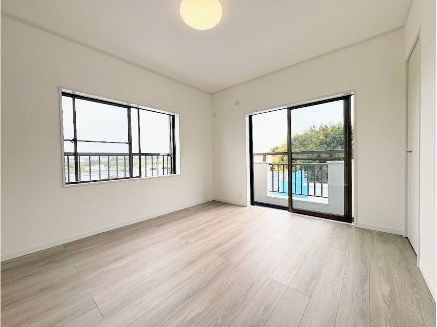 開放感あふれる広いお庭が魅力で、南・東の二面が開けた設計により、室内まで明るい陽光がたっぷりと差し込みます。眺望も楽しめる住まいです。