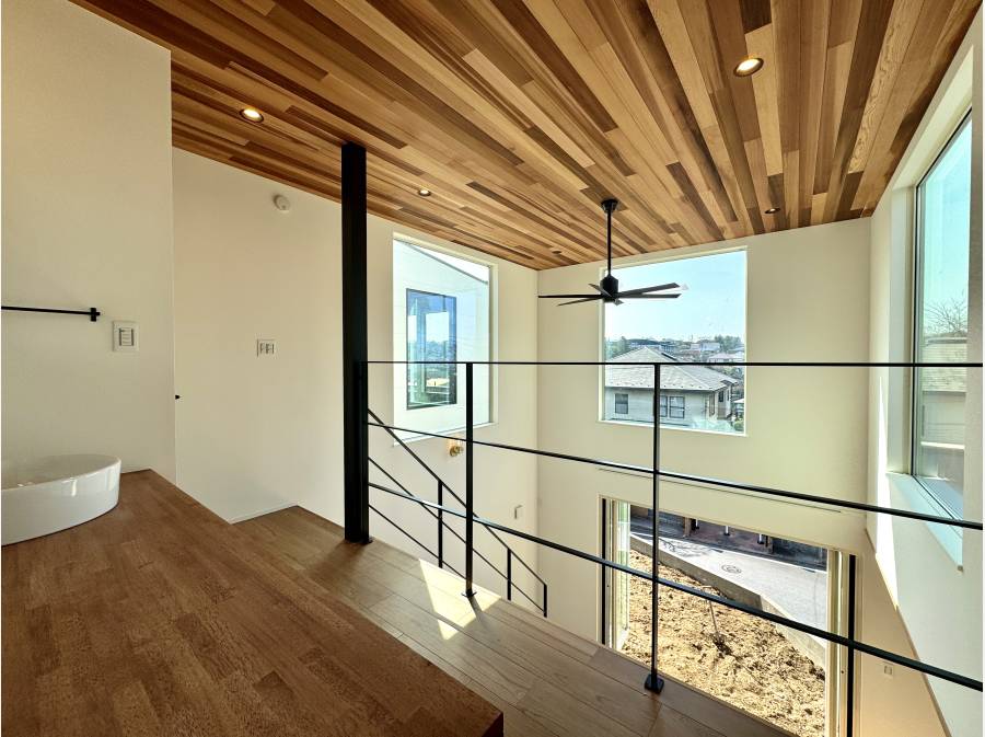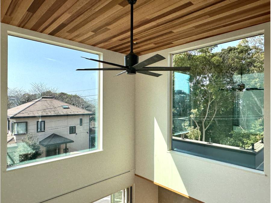 角地かつ高低差を活かした設計のため開放感に包まれる心地良い雰囲気が漂います