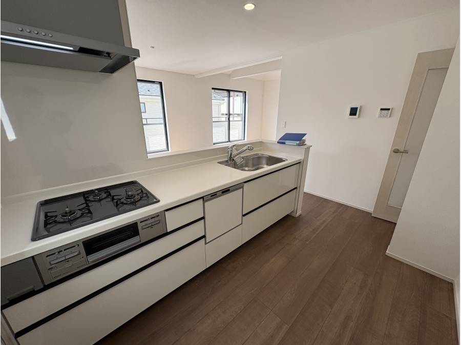 浴室乾燥機付き、食洗器付きシステムキッチン。