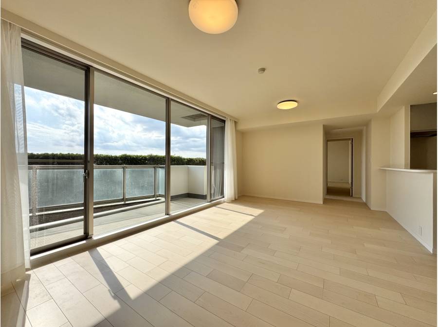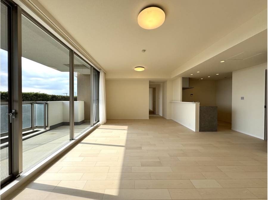 約24帖の広々としたLDKは、陽光がやわらかく差し込み、家族やゲストとの時間を心地よく包み込みます。
