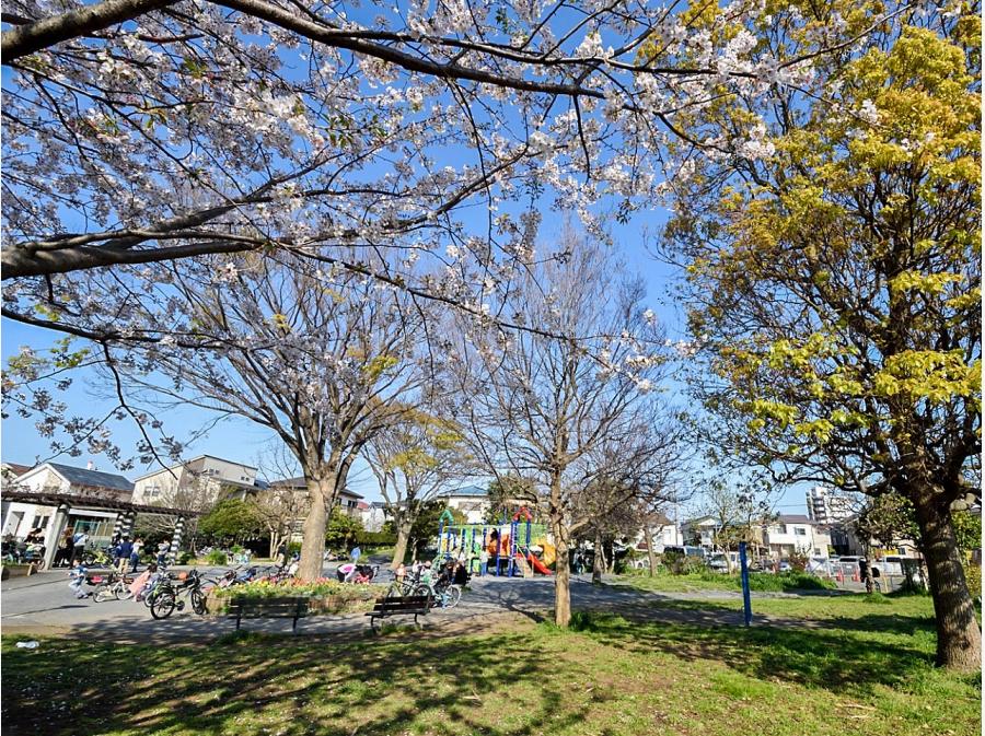 すぐ近くには引地川が流れ、その先には大型ショッピングモールが佇みます。