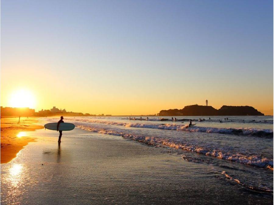 長い海岸線が続く藤沢のビーチ。全国有数のサーフスポットで、多くのポイントが点在し、一年を通してコンスタントに波が立つサーファーの聖地としても有名です。