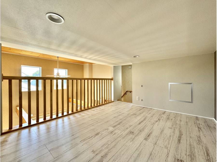 約5.6帖のロフトは収納としてはもちろん、趣味やワークスペースとしても活用可能。桜無垢フローリングの質感が、空間全体に温もりと上質さを添えています。