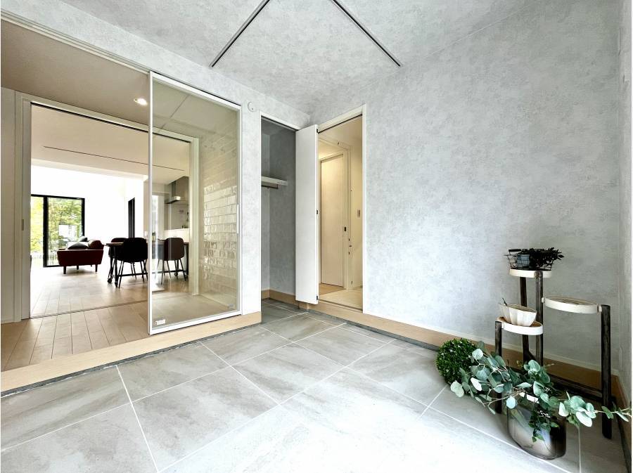 高窓からの陽光が差し込む開放感に加え、「使い方無限」を掲げる機能的な設計も特徴で、広々とした玄関にはベビーカーやゴルフバッグ、サーフボード等も収納可能。