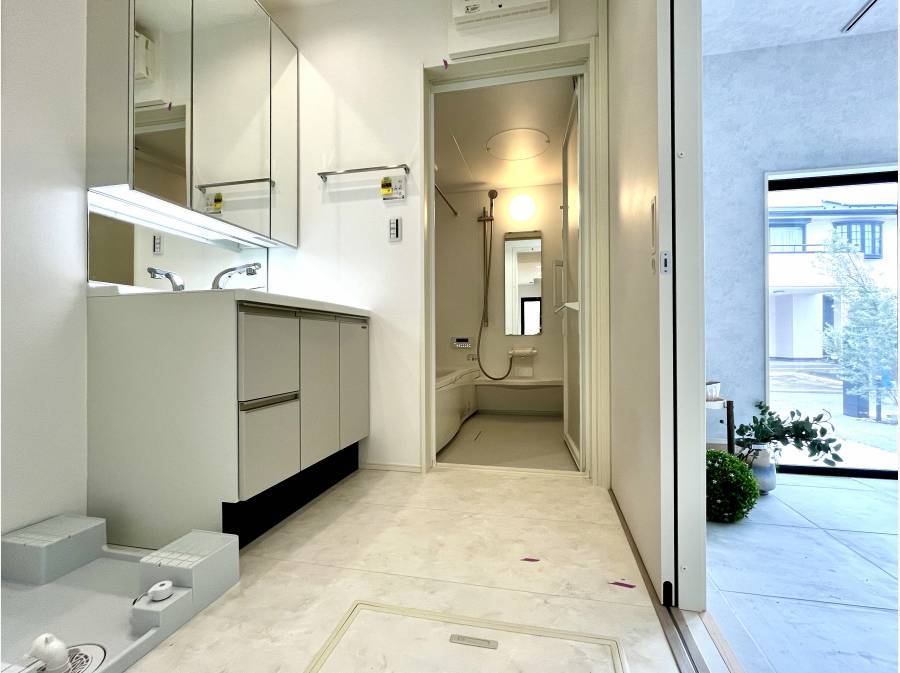 さらに洗面室・浴室を1階に集約したことで、帰宅後すぐに手洗いや入浴ができる「家事ラク」な動線を実現しました。