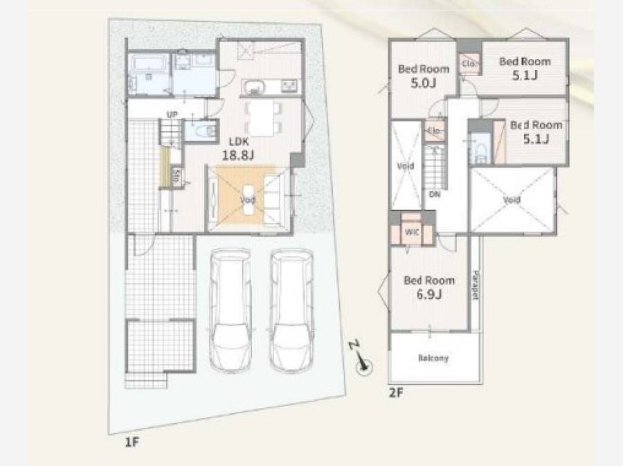 約42坪の広々とした敷地には、2台分のカースペースを確保し、ゲストを迎える際も安心です。間取りはゆとりある4LDKで、家族それぞれの時間をしっかりと尊重できます。