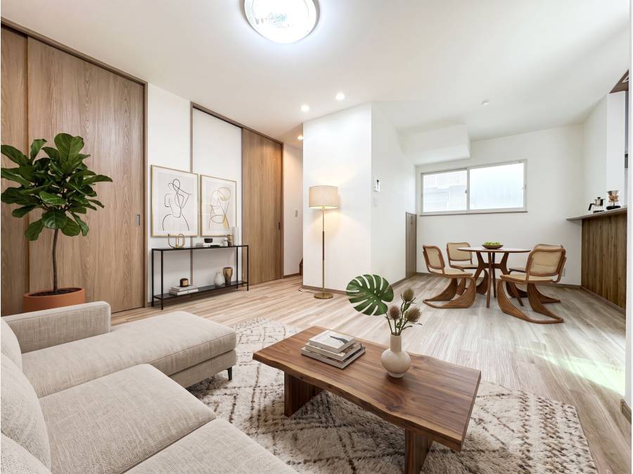 「辻堂」駅徒歩10分~リノベスタイル辻堂~リビングの先にはウッドデッキ付き