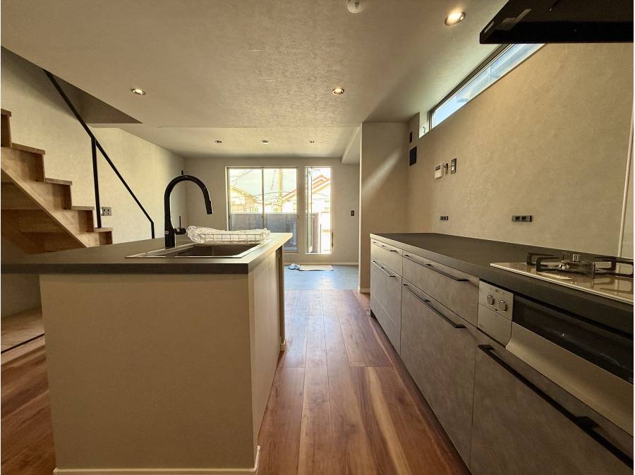2階にはリビングダイニングキッチンと水回りが備わった住居スペースがあり、