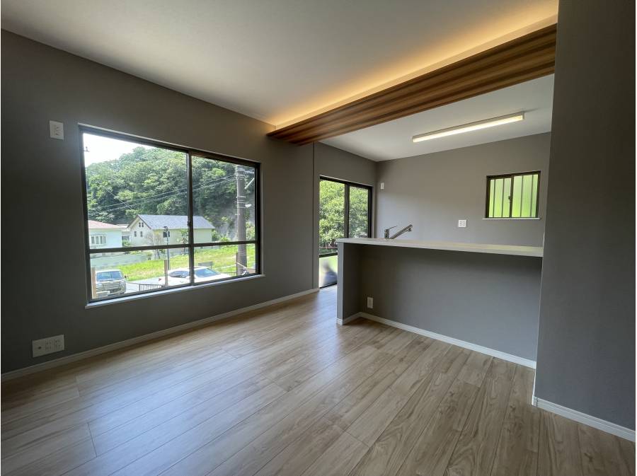 約23.4帖のLDKは、光がたっぷりと差し込む広大な空間で、家族が集う憩いの場所となっています。