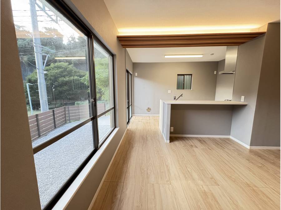 南西向きのリビングは窓も大きく設けており、陽当たり良好。1階に水回りも集約し、マリンスポーツ帰りに嬉しい間取りに。