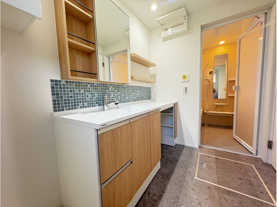 海遊びの後には、玄関から浴室へ直接アクセスできる工夫された動線があり、海辺での暮らしを快適にサポートします。
