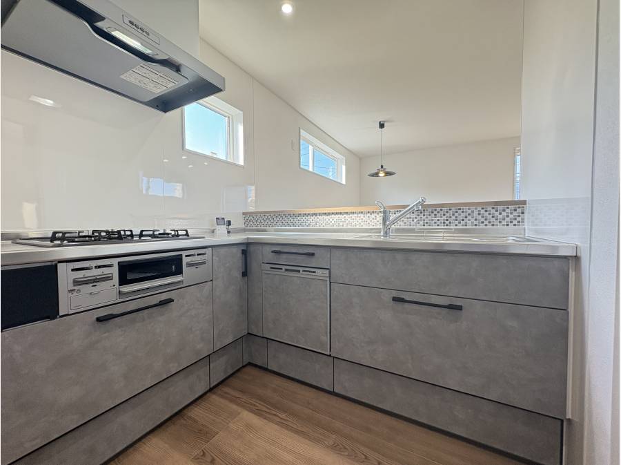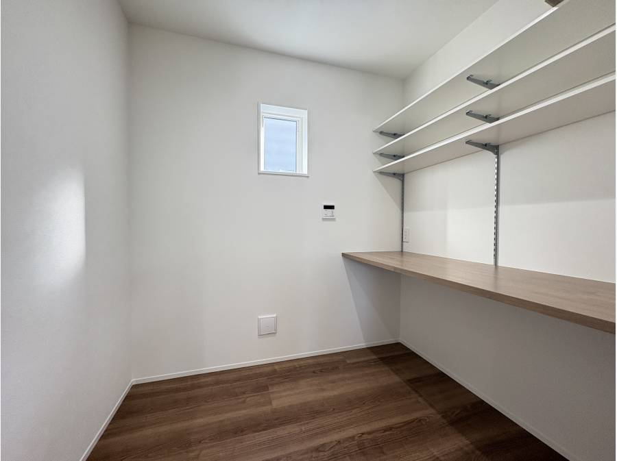 パントリー付きのキッチンは収納力があり、ユーティリティスペースとしてカウンターを活用することも可能です。