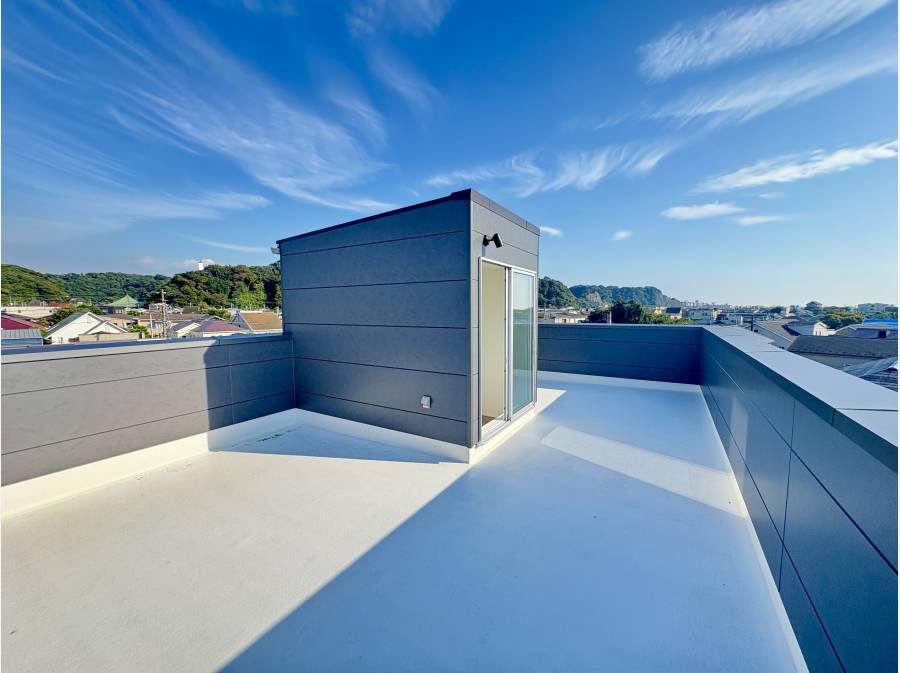 屋上のルーフバルコニーからは、美しい鎌倉の街並みと海を望むことができ、暮らしに特別な景色を添えます。
