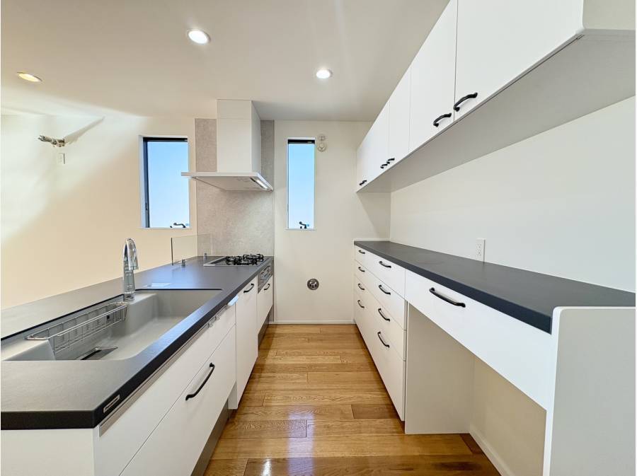カップボード付きのキッチンスペースからも海が見え、家族の時間もリゾート気分に♪