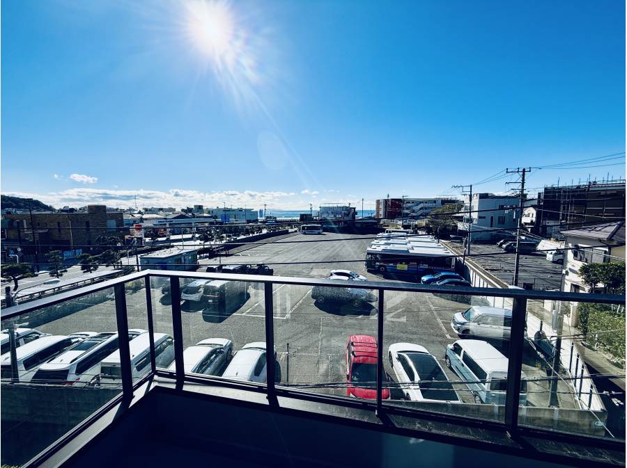 2階・3階のバルコニーからは、青く抜ける海景がすっきりと広がります。