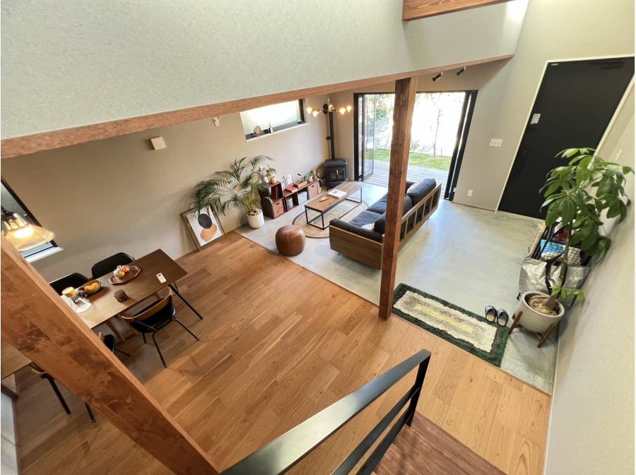 天然木でできたウッドデッキや、石張りの壁、土間リビングなどこだわりの詰まったディテールとなっております!