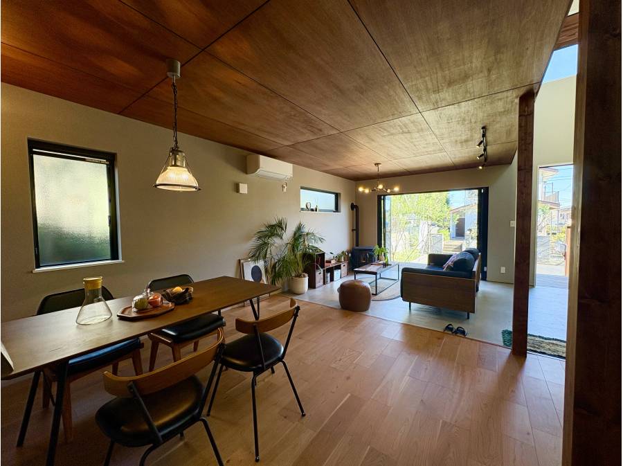 約24.8帖の広々としたLDKは、明るい光と心地よい風を取り込む開放的な設計が魅力です。キッチンからリビング、庭へとつながるスムーズな動線が、料理を楽しみながらゲストをもてなす時間をさらに充実させてくれます。