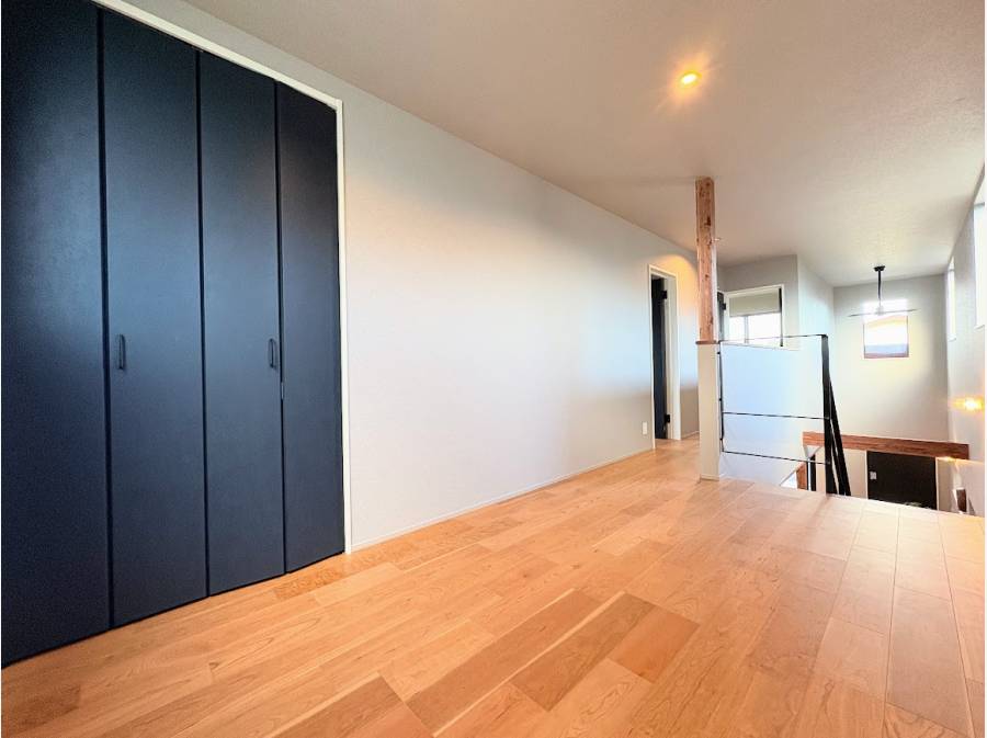 2階には洋室が3部屋あり、さらに約7.4帖のフリースペースが設けられています。このスペースは、趣味に没頭するアトリエや書斎、ご家族のライフスタイルに合わせた多用途な空間として活用可能です。暮らしに遊び心とゆとりをプラスする設計となっています。
