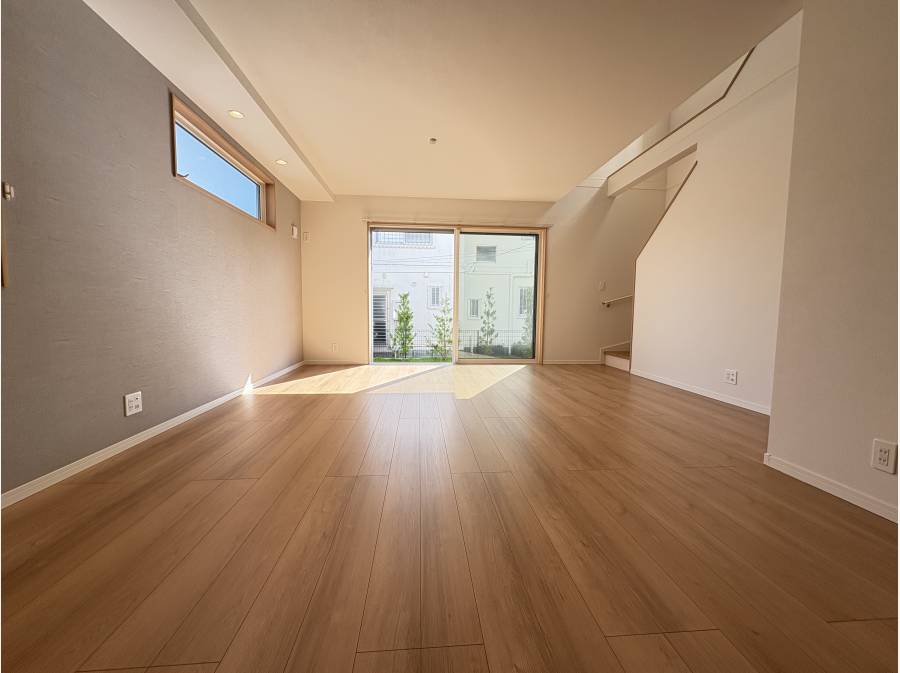 1階には約21帖の広々としたLDKと、テラス・庭をつなぐ開放的な設計。