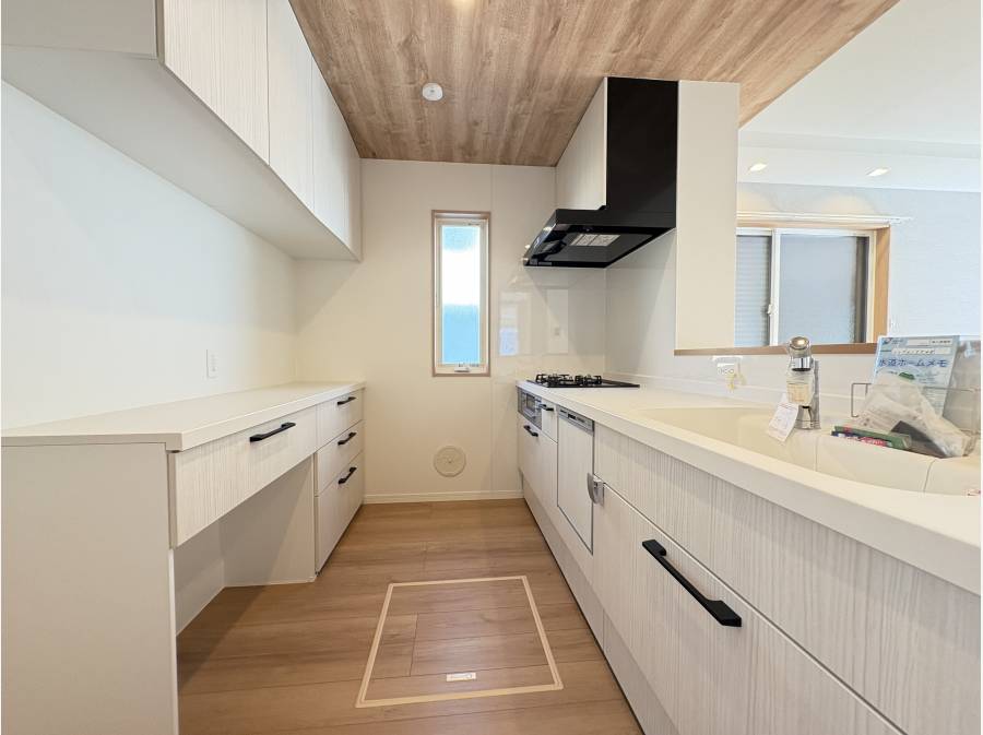 カップボードとパントリーを備えたキッチンは収納力も高く、日常を快適にサポートします。