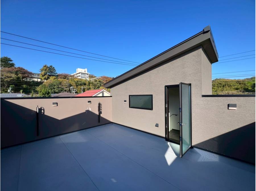 そして14.6帖ものルーフバルコニー、朝はコーヒー片手に由比ガ浜の