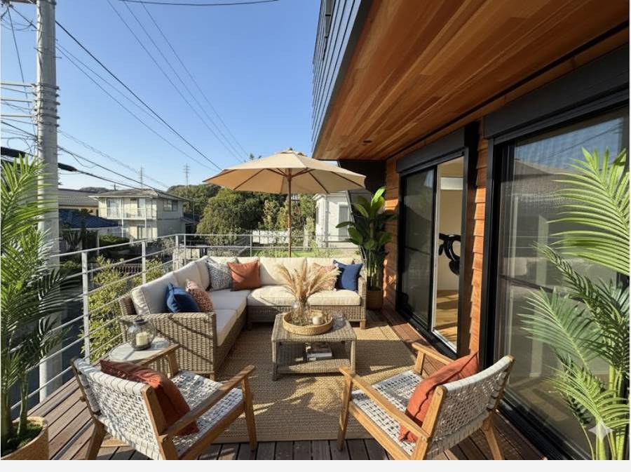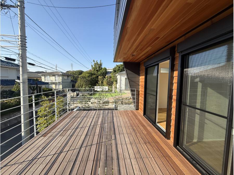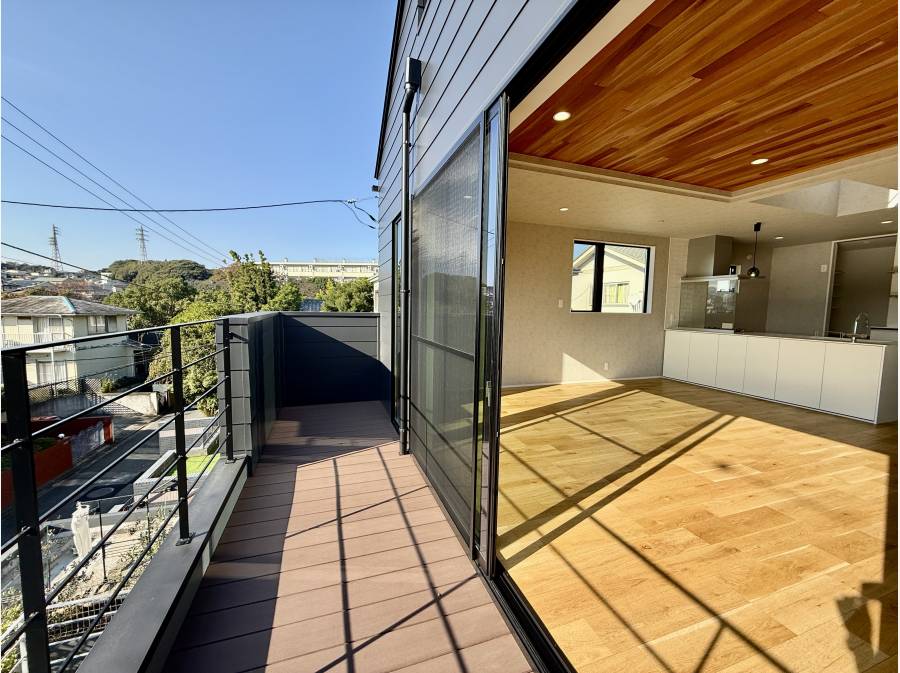 光と風が心地よく通る開放的なリビングと、広いウッドデッキで特別な日常を。