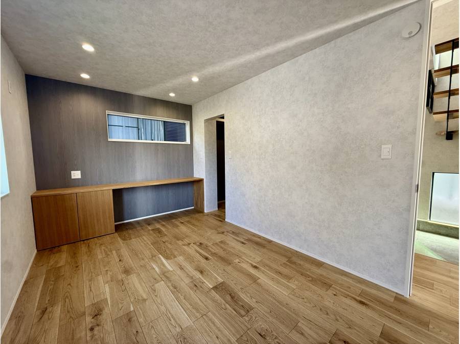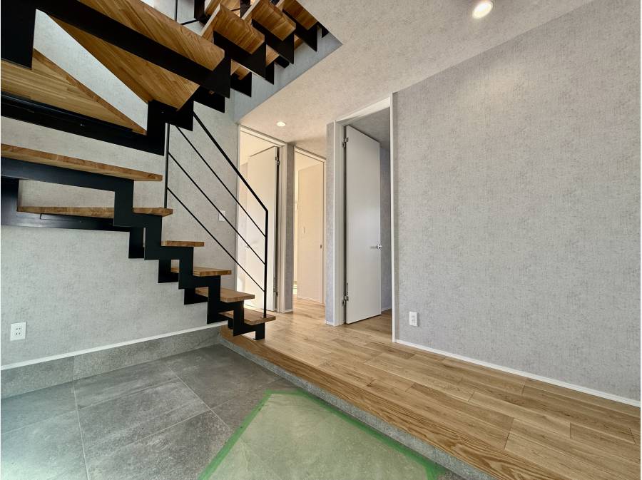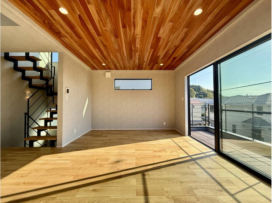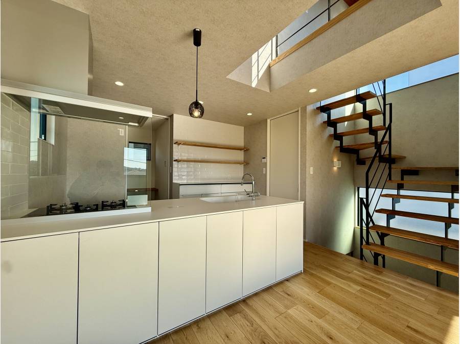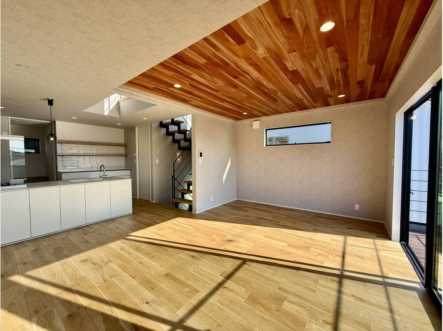 おしゃれなアイアン階段を上がれば、約20帖超のゆとりあるLDK。
