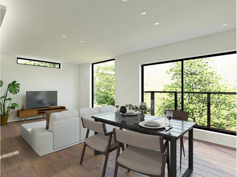 1階からも広がる開放的な眺望が特徴的で、2階に上がると江ノ島や海を一望できる贅沢な景色が楽しめます。日常の中で海を感じられる特別な空間です。