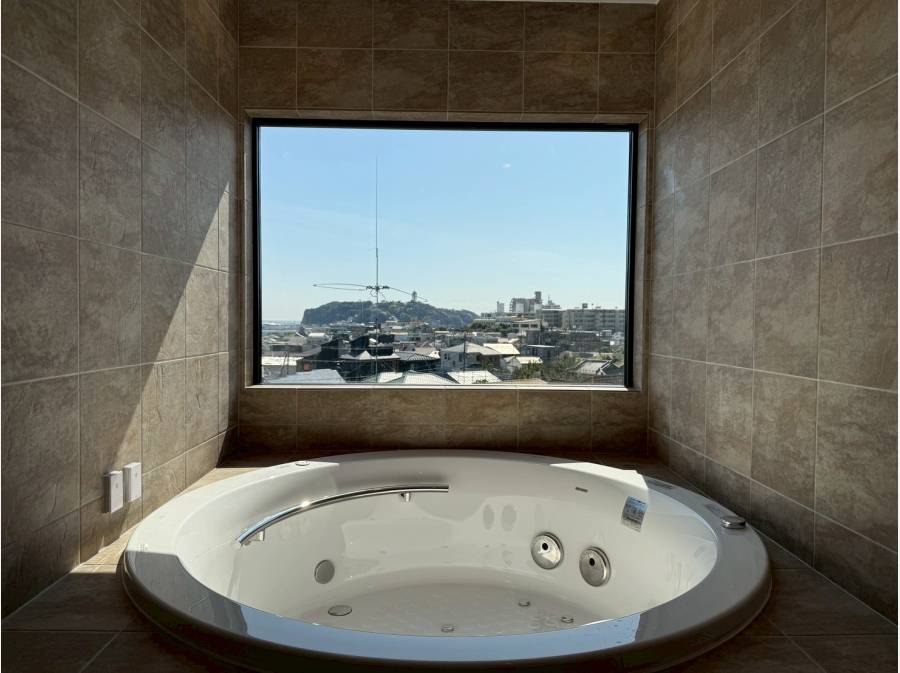 【鎌倉・腰越】江ノ島を望む贅沢な眺望。広々としたLDKとジャグジーで湘南の魅力を堪能。