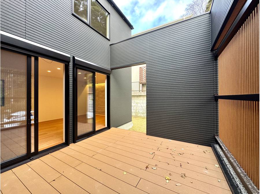 いちばんの魅力はリビングから続くウッドデッキテラスとプライベートなお庭