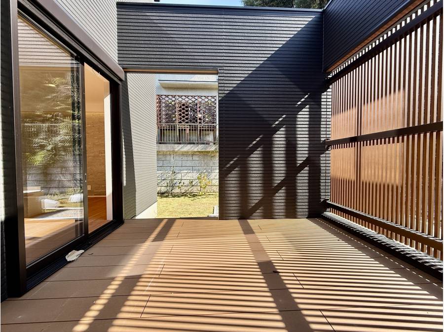 格子の目隠しが外部からの視線を和らげ、リゾートのようなプライベート感を楽しめます。