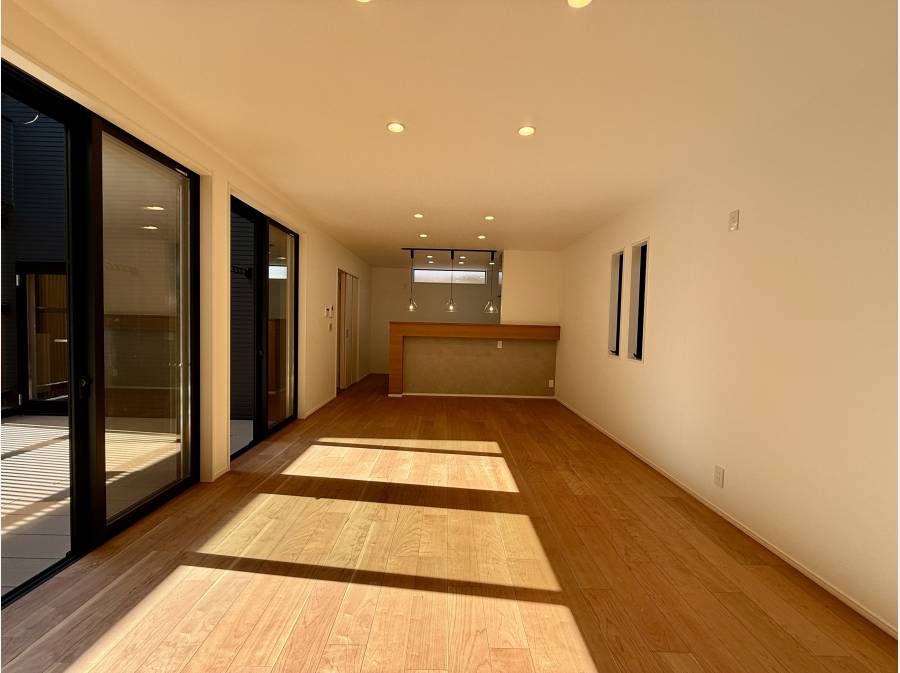 約20帖のLDKは約8帖のウッドデッキとつながり、内と外が一体となった開放感のあるリビングを実現。