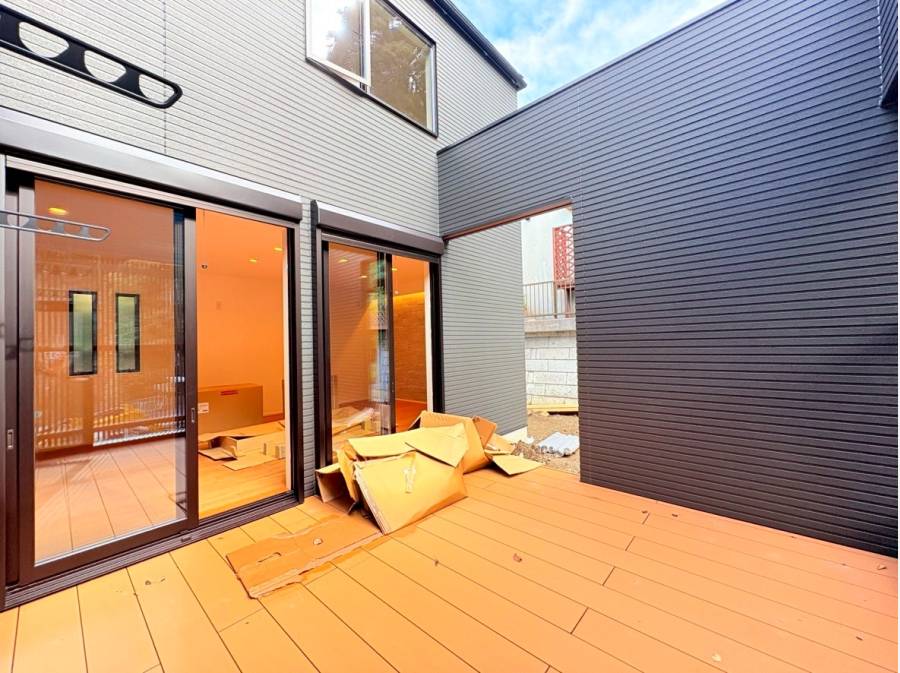 約20帖の広々としたLDKに隣接する8帖のウッドデッキでは、外の緑を眺めながらリラックスしたひとときをお楽しみいただけます。