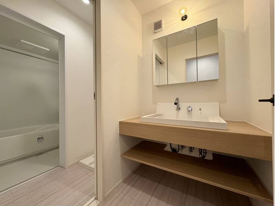 また、エコカラットが空間に上質なアクセントを加え、間接照明がナチュラルな素材の陰影を引き立てることで、心安らぐ雰囲気が広がります。