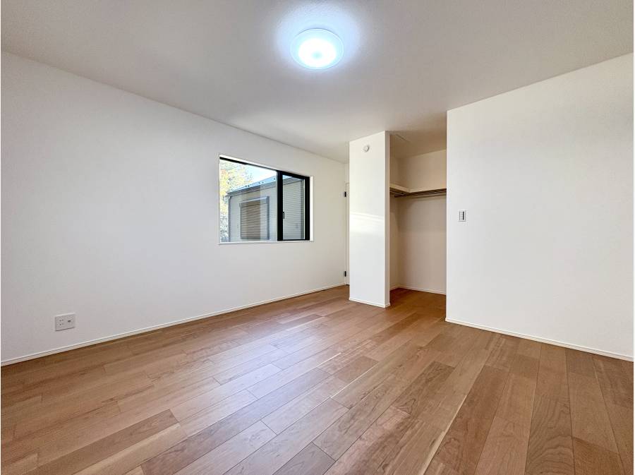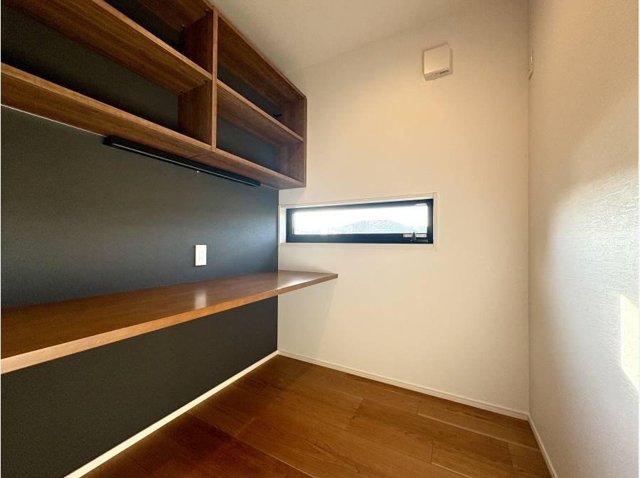 2階には造作カウンター付きの書斎を用意し、在宅ワークや趣味の時間にも便利です。主寝室は8.5帖の広さに加え、2か所のウォークインクローゼットが備えられており、機能性と快適さを両立した間取りとなっています。家族の成長に応じて柔軟に対応できる住まいです。