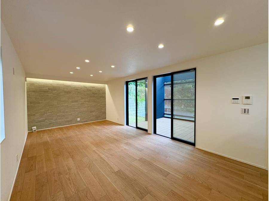 天然木のフローリングは、使い込むほどに深い味わいが増し、リビングから続く8.0帖のウッドデッキは水栓付きで外の空間を気軽に楽しめます。
