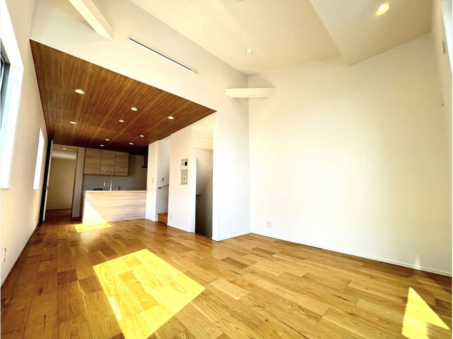 LDKは2階にあり、勾配天井で約16.2帖の開放感ある空間となっています。