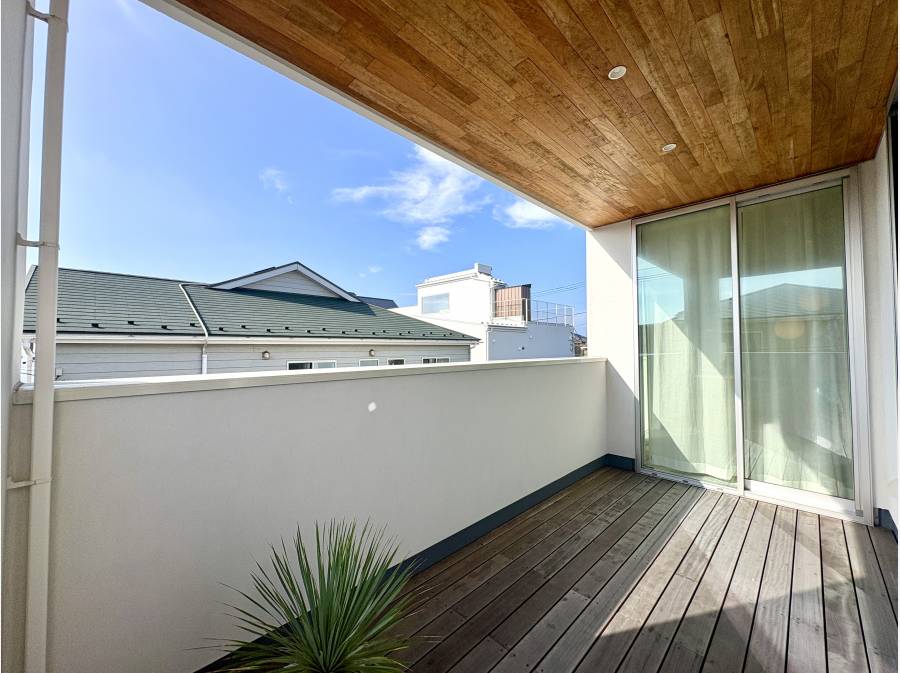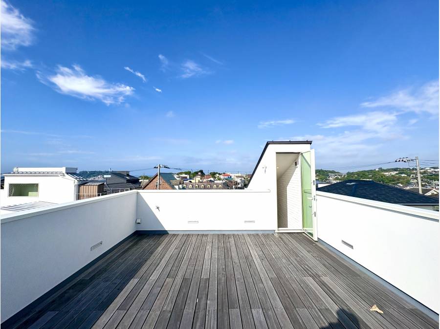 約21帖の広々としたバルコニーは居住空間とつながり、屋外の気持ち良さを存分に楽しめます。シャワー設備も整い、海遊びの後も快適。ルーフバルコニーからは、海や江ノ島、富士山が一望でき、時間とともに変化する景色を楽しむことができます。