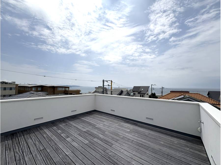 広々とした玄関から続く落ち着いたベッドルームやバスルーム、光が差し込む階段を上がると、バルコニーに面したリラックスできるリビングがあります。開放的な対面式キッチンダイニングや、海や富士山を眺められるルーフトップバルコニーも魅力です。